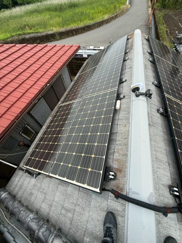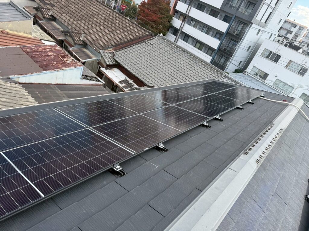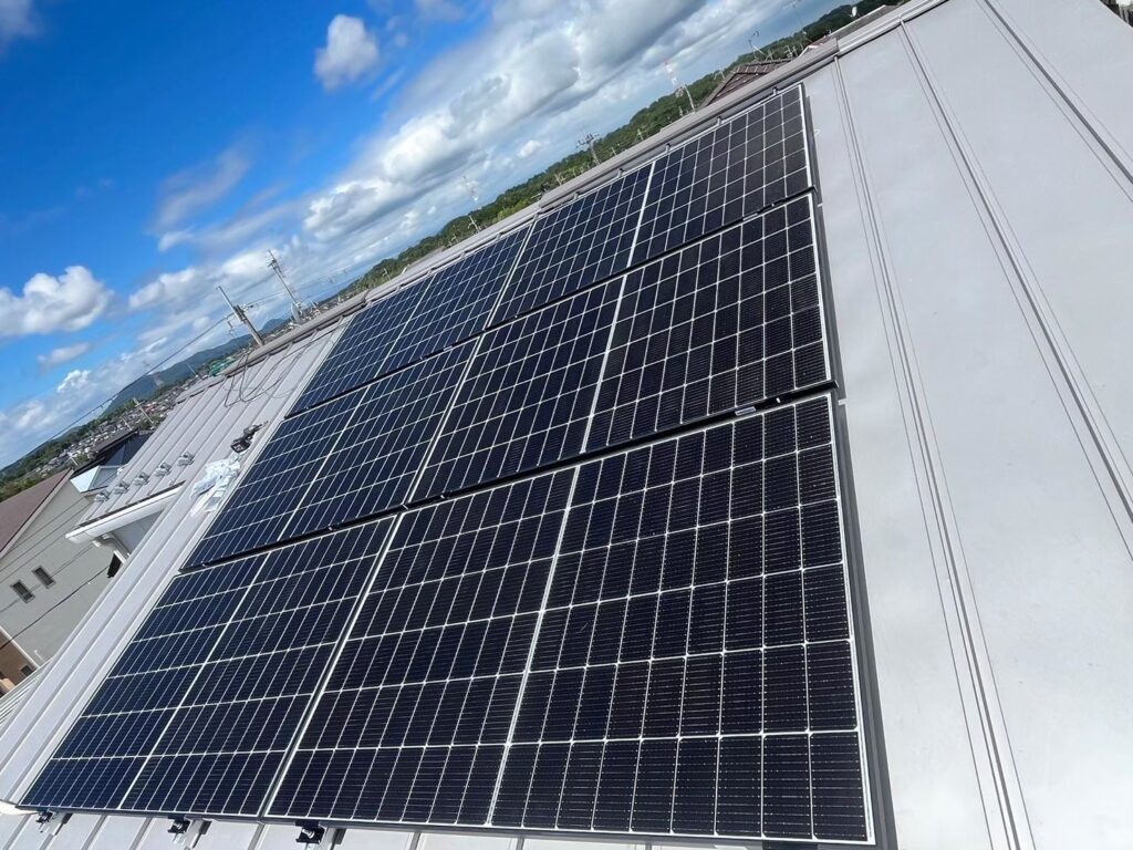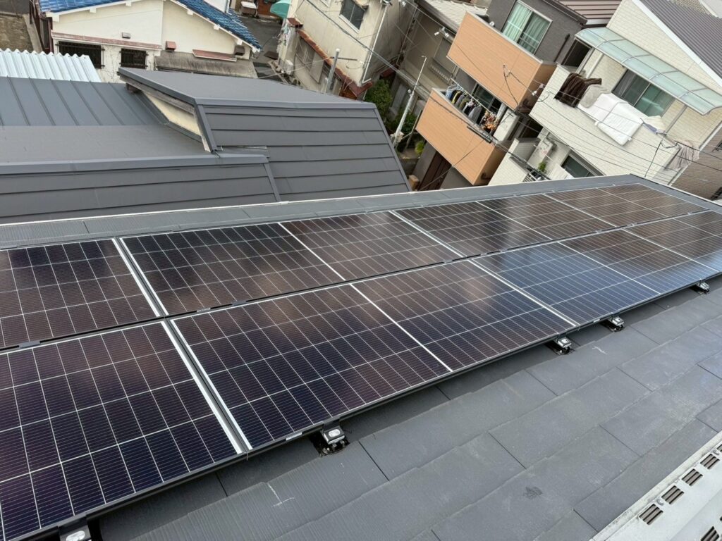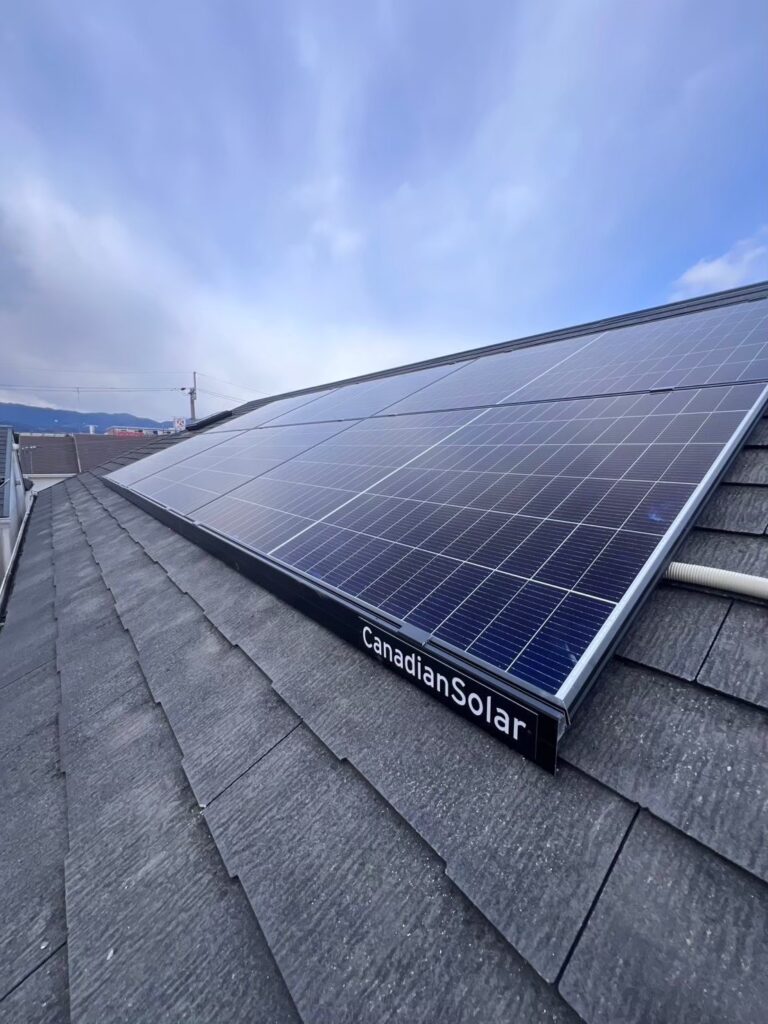 屋根に設置された太陽光パネルで、家庭の電力を自家発電